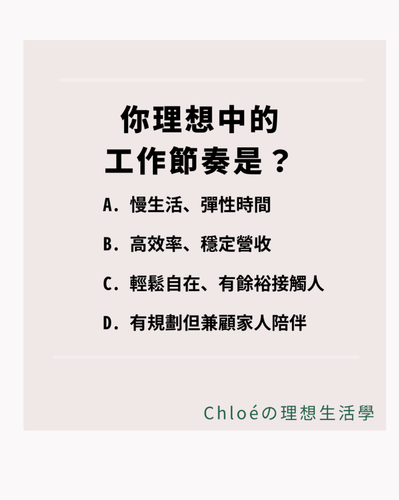 | B 型 | B 選項最多 | 事業經營型 | 以投資角度思考,重視報酬率與經營效率。 | 應優先建立品牌定位與行銷策略,導入自動化與數據分析來提升收益。 |